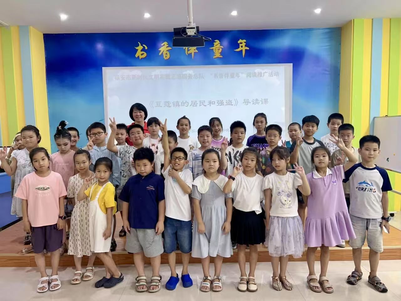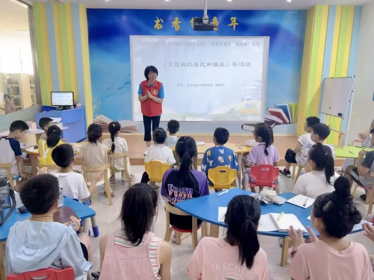 8月10日,福安实小富阳校区的缪晓红老师和孩子们分享了一本充满哲理的童话故事《豆蔻镇的居民和强盗》。