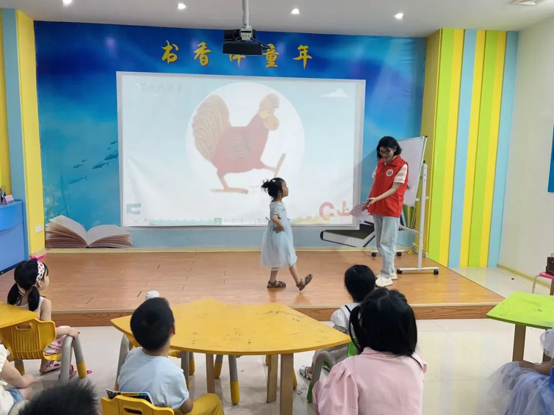 8月24日,福安市逸夫小学的王丽梅老师为孩子们带来了绘本——《母鸡萝丝去散步》,培养孩子们的阅读兴趣和阅读能力,同时帮助孩子们培养观察力和预测能力。