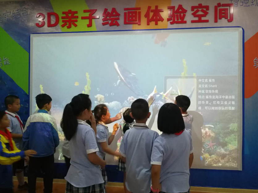 4月22日下午及6月1日下午举办两场3D海洋体验活动 。3D海洋绘画体验空间是一款专为3—13岁小朋友打造的益智体感互动软件,独特的数字化设计,让孩子在想象的空间里自由的创造,用水彩笔对海洋动物画纸进行涂色,然后通过3D扫描仪对涂好颜色的海洋动物进行扫描,让纸上的海洋动物活灵活现地出现在显示屏上,与孩子们进行互动,让孩子们在学中玩、玩中学,真正做到了寓教于乐。